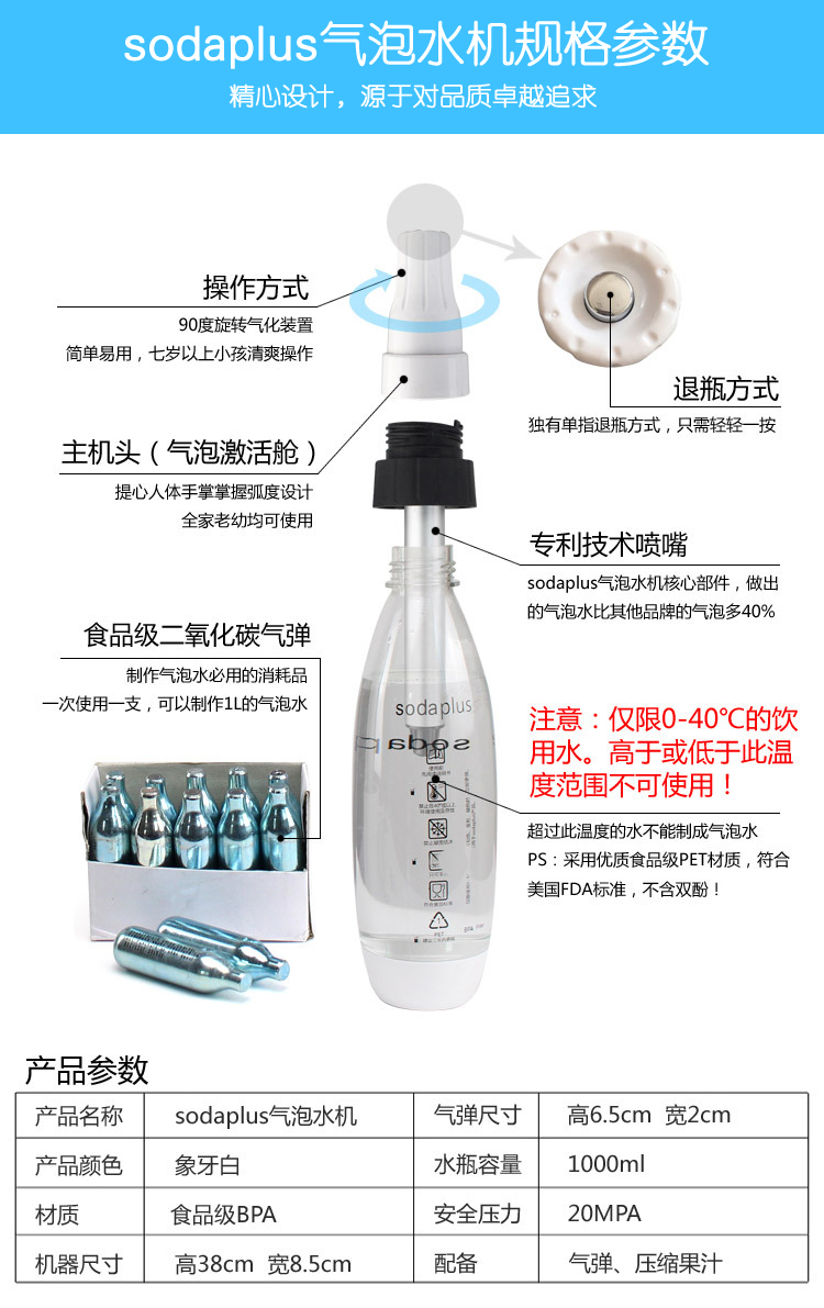 氣泡機 sodaplus水瓶1LPET耐壓水瓶蘇打機飲料機專用汽水瓶